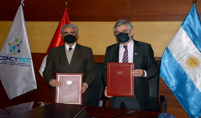 El Consejo Nacional de Ciencia Tecnología e Innovación Tecnológica (Concytec) y el Ministerio de Ciencia, Tecnología e Innovación deArgentina suscribieron un plan de acción, para promover e implementar actividades conjuntas de cooperación entre investigadores e instituciones de investigación públicas y privadas y la formación de capacidades humanas.