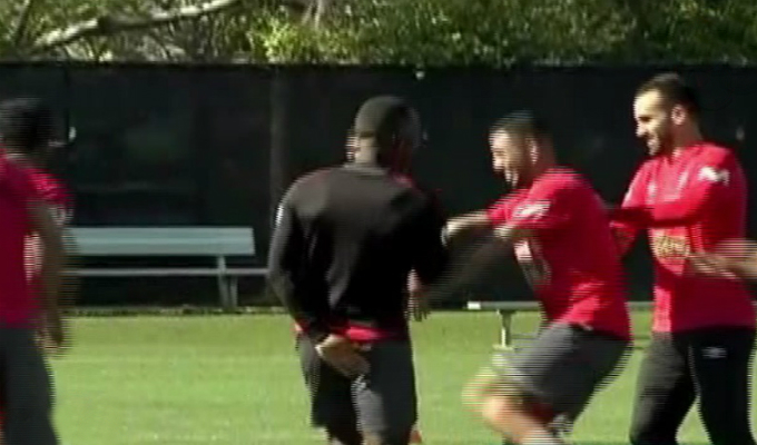 En esta otra cara del fútbol, pudo verse a los jugadores divertirse y castigarse con un ‘apanado’, tal como se ve en las imágenes. La primera víctima fue la ‘Foquita’, con quien no tuvieron piedad. Lo acorralaron hasta darle la respectiva sanción.