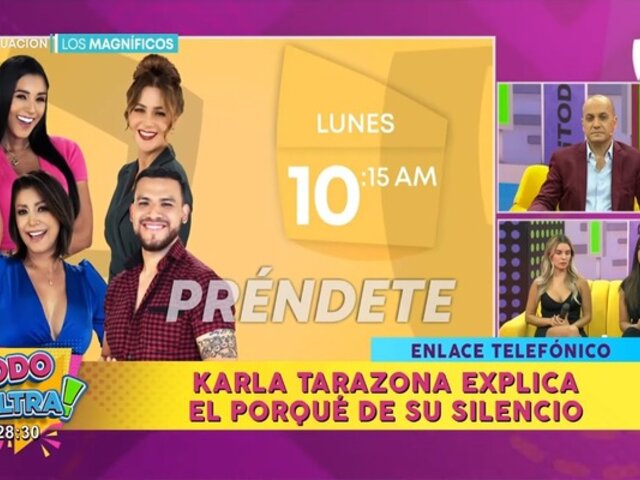 En una entrevista en vivo en el programa "Todo se filtra", Karla Tarazona, conductora del programa "Préndete", fue abordada por Giovanna Valcarcel respecto a la primicia que supuestamente lanzaría en su programa el próximo lunes, relacionada a los ampays de Christian Domínguez con Mary Moncada y Alexa Samamé.