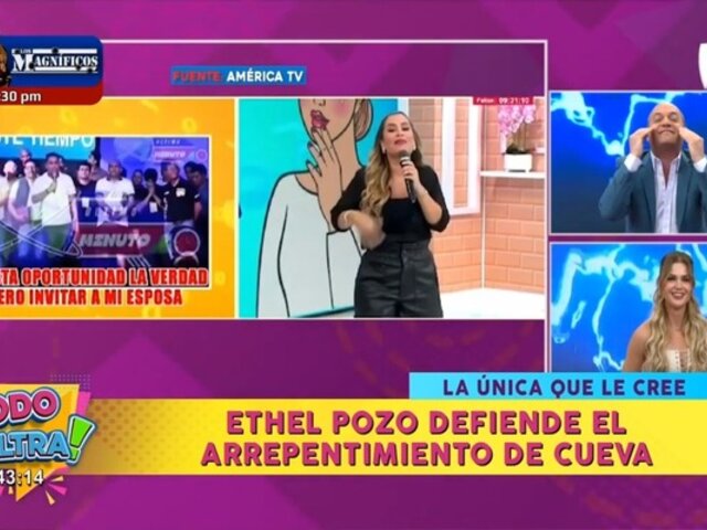 "A la única a la que no le creemos es a ti, qué falsa es esta señora", expresó el presentador. Además, Villavicencio señaló que, en el evento al que se refería Pozo, no estaba prohibido el uso de celulares y afirmó que Cueva mencionó a Dios y pidió perdón.