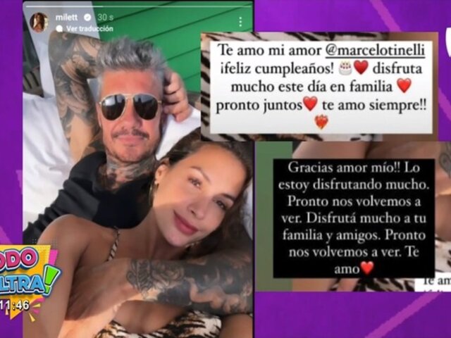 Aunque se confirmó que Milett no pudo estar presente debido a compromisos profesionales que los mantienen separados geográficamente, esto no impidió que expresara su amor hacia Tinelli a través de las redes sociales.