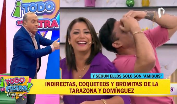 Pese a que muchas veces han señalado ser solo "amigos", lo cierto es que en los sets de "Préndete" se vive un ambiente lleno de coqueteos, bromitas e indirectas entre Karla Tarazona y Christian Domínguez.