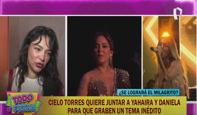 En medio de su plan de publicar un nuevo tema, Cielo Torres reveló para las cámaras de Todo Se Filtra, que buscará el apoyo de Yahaira Plasencia y Daniela Darcourt, a pesar de las especulaciones que han surgido de una enemistad entre ambas artistas.