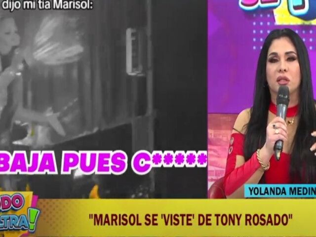 En los últimos días y durante una presentación se captó a Marisol lanzando fuertes calificativos por las mujeres, lo que causó la indignación de su archienemiga Yolanda Medina, quien opinó al respecto y la comparó con Tony Rosado.