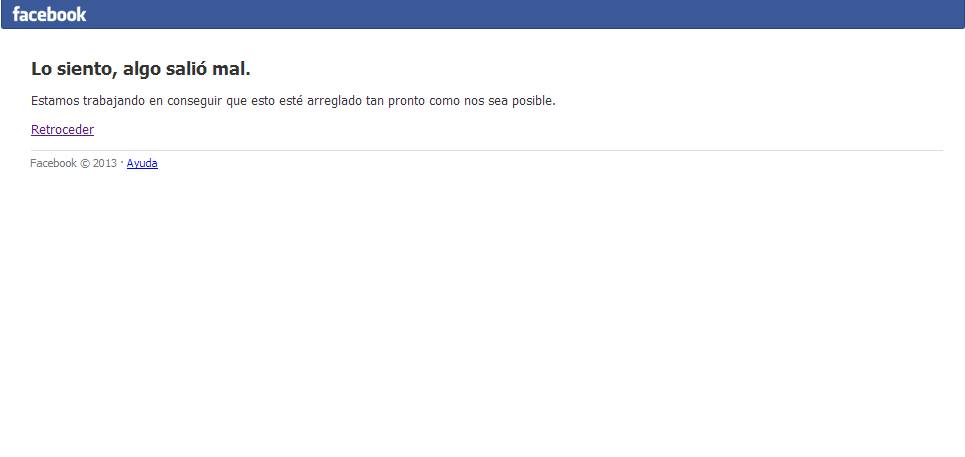 La página, que fue inhabilitada por unos minutos, mostró el siguiente mensaje: "Lo sentimos, algo salió mal. Estamos trabajando para arreglarlo tan pronto como nos sea posible".